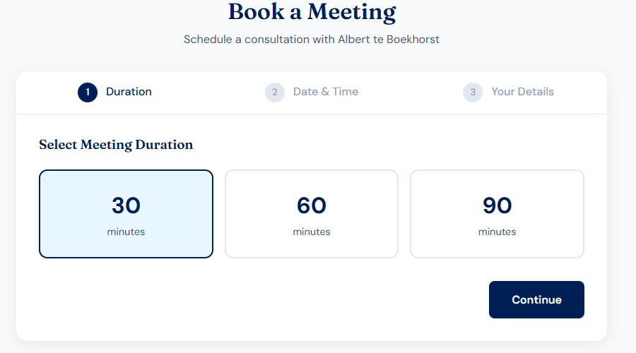 Booking a meeting/lunch, drinks, I love VAR t-shirt giving ceremonies, re-connect, whatever meeting option (yes, please use it if you read this and haven’t spoken to me for a while Book a Meeting | Blue Sky Consulting), is something everyone should have on their professional site. It is actually connected to my Outlook through Microsoft Graph and sends emails using contact@blueskyconsult.nl to verify would-be-bookers’ email addresses to prevent the bot army prowling the internet to book meetings (which so far seems to be working well enough). It shows you open slots in my calendar to choose from. When the authenticity of the mail address is confirmed, it books a meeting with a MSFT-teams link and sends out the invites.